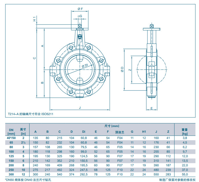 T214-A DN40,T214-A DN50,T214-A DN65,T214-A DN80,T214-A DN100,襯氟蝶閥