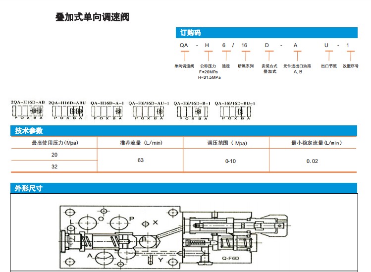 2QA-H16D-AB,2QA-H16D-ABU,QA-F16D-A-1,QA-F6/16D-AU-1,疊加式單向調(diào)速閥