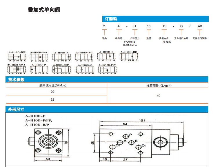 A-H10D-B/P,A-H10D-P/A,A-H10D-A,A-H10D-AU,A-H10D-B,疊加式單向閥