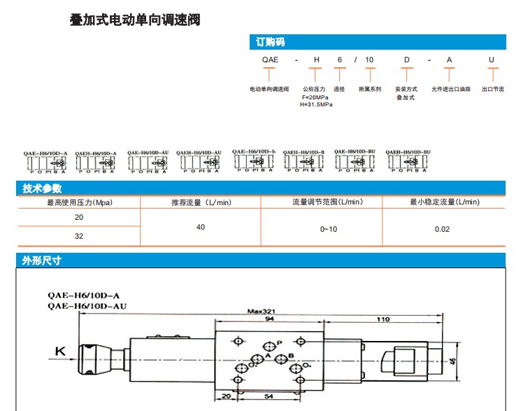 QAE-H6/10D-A,QAEH-H6/10D-A,QAE-H6/10D-BU,疊加式電動單向調(diào)速閥
