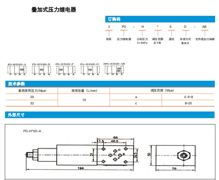 PD-Ha6D-A,PD-Ha6D-O,PD-Hc6D-B,PD-Hc6D-O,2PD-Hc6D-AB,疊加式壓力繼電器