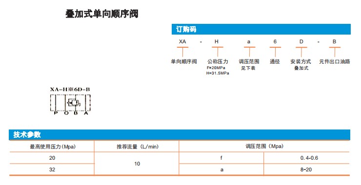 XA-Ha6D-B,XA-Hf6D-B,XA-Fa6D-B,XA-Ff6D-B,疊加式單向順序閥