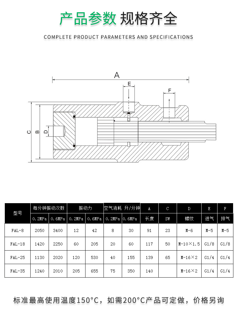 氣動(dòng)活塞桿伸縮式振動(dòng)器FAL-18,F(xiàn)AL-25,F(xiàn)AL-35震蕩器