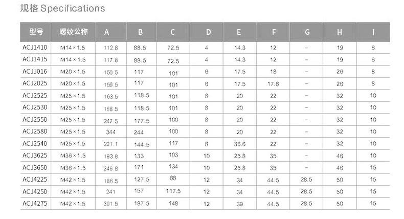 可調(diào)式2550油壓緩沖器ACJ1007,ACJ1210,ACJ1412,ACJ2020,ACJ2550,ACJ2725,ACJ2750,ACJ3325,ACJ3350,ACJ3625,ACJ3650,ACJ4225,ACJ4250,ACJ4275阻尼器