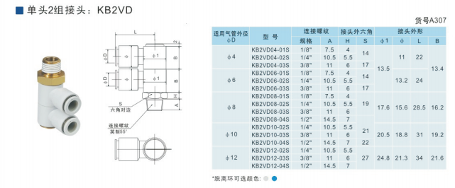 SMC型單頭2組接頭KB2VD04-M5,KB2VD04-01S,KB2VD04-02S,KB2VD04-03S,KB2VD06-01S,KB2VD06-02S,KB2VD06-03S,KB2VD08-01S,KB2VD08-02S,KB2VD08-03S,KB2VD10-01S,KB2VD10-02S,KB2VD10-03S,KB2VD10-04S,KB2VD12-02S,KB2VD12-03S,KB2VD12-04S,