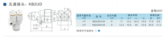 SMC型五通接頭KB2UD04-06,KB2UD06-08