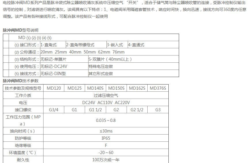 直角式脈沖閥MD120S,MD125S,MD140S,MD150S,MD162S,MD176S,