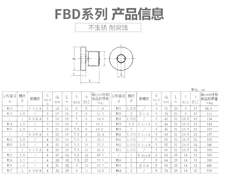 不銹鋼FBD-M8*1S 不銹鋼FBD-G1/8S 不銹鋼FBD-M10*1S 不銹鋼FBD-G1/4S 不銹鋼FBD-M12*1.5S 不銹鋼FBD-G3/8S 不銹鋼FBD-M14*1.5S 不銹鋼FBD-G1/2S 不銹鋼FBD-M16*1.5S 不銹鋼FBD-G3/4S 不銹鋼FBD-M18*1.5S 不銹鋼FBD-G1S 不銹鋼FBD-M20*1.5S 不銹鋼FBD-G11/4S 不銹鋼FBD-M22*1.5S 不銹鋼FBD-G11/2S 不銹鋼FBD-M24*1.5S 不銹鋼FBD-G2S 不銹鋼FBD-M27*1.5/2S 不銹鋼FBD-M30*1.5/2S 不銹鋼FBD-M33*1.5/2S 不銹鋼EBD-M8*1S 不銹鋼EBD-G1/8S 不銹鋼EBD-M10*1S 不銹鋼EBD-G1/4S 不銹鋼EBD-M12*1.5S 不銹鋼EBD-G3/8S 不銹鋼EBD-M14*1.5S 不銹鋼EBD-G1/2S 不銹鋼EBD-M16*1.5S 不銹鋼EBD-G3/4S 不銹鋼EBD-M18*1.5S 不銹鋼EBD-G1S 不銹鋼EBD-M20*1.5S 不銹鋼EBD-G11/4S 不銹鋼EBD-M22*1.5S 不銹鋼EBD-G11/2S 不銹鋼EBD-M24*1.5S 不銹鋼EBD-G2S 不銹鋼EBD-M27*1.5/2S 不銹鋼EBD-M30*1.5/2S 不銹鋼EBD-M33*1.5/2S 不銹鋼EBD-M36*1.5/2S