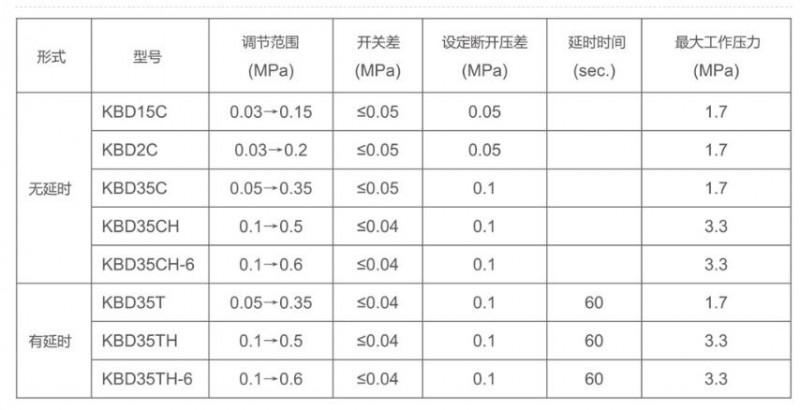 KBD-H型壓差控制器最高-工作圧力3.3MPa ,可用于螺桿式圧縮機的油圧保抉或油辻濾器堵塞保抄裝置。