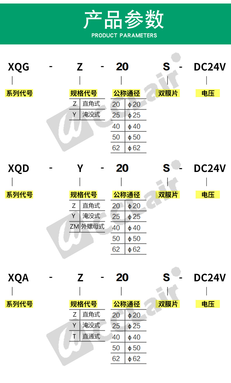 XQD-Y-25,XQD-Z-20,XQD-Y-40S,XQD-Z-25,淹沒式脈沖閥 XQD-Y-50S,XQD-Z-40S,XQD-Y-62S,XQD-Z-50S, XQD-Y-76S,XQD-Z-62S,XQD-Z-76S,