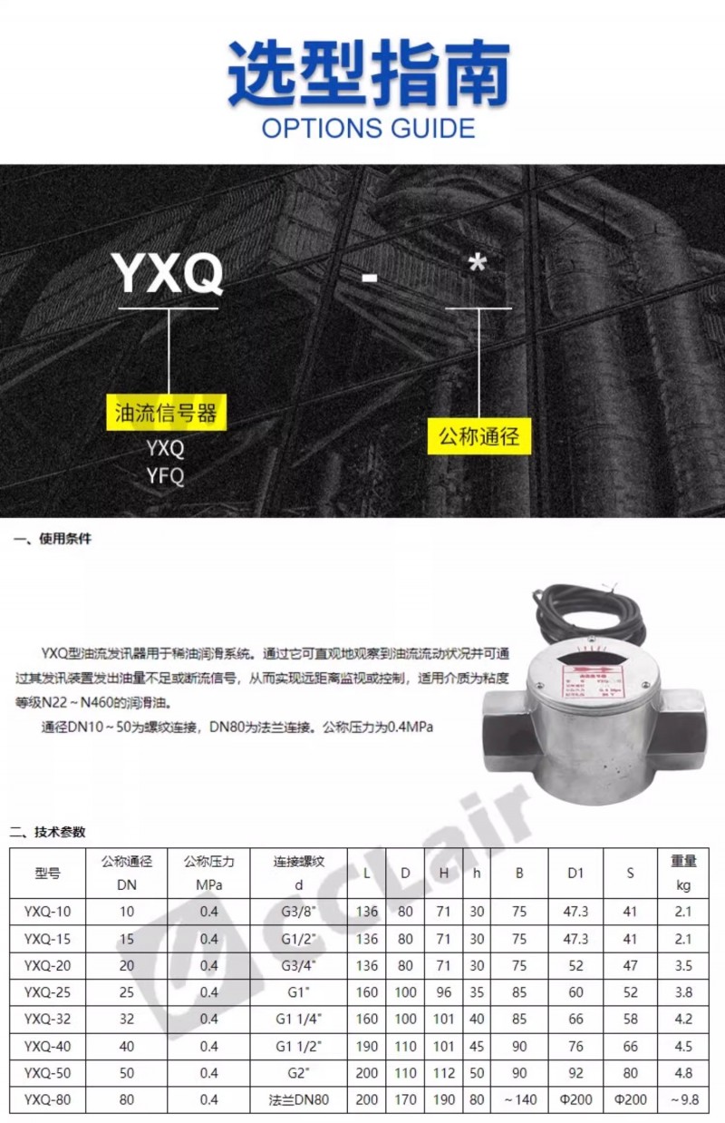 YXQ-10II (G3/8),YXQ-40II (G11/2),YXQ-15II (G1/2),YXQ-50II (G2),油流信號器 YXQ-20II (G3/4),YXQ-65II (G2-1/2), YXQ-25II (G1),YXQ-80II 法蘭式, YXQ-32II (G11/4),
