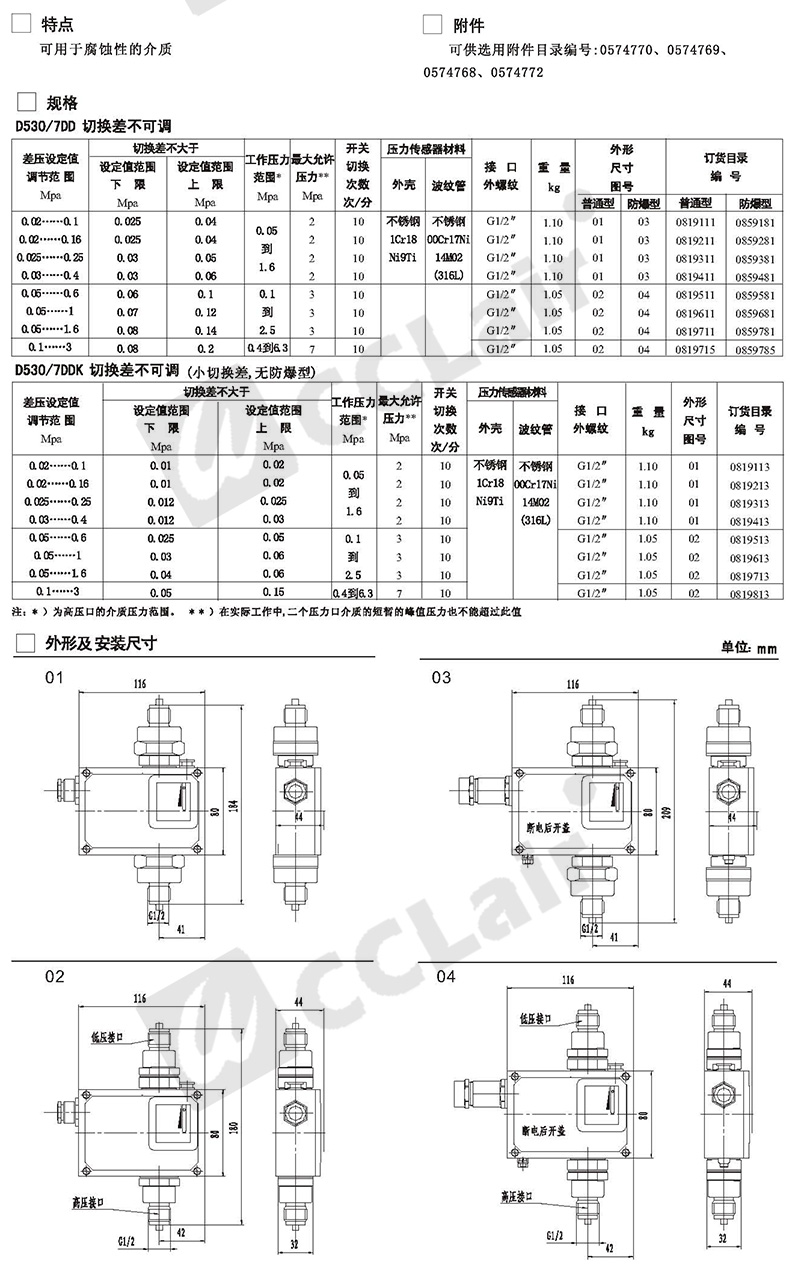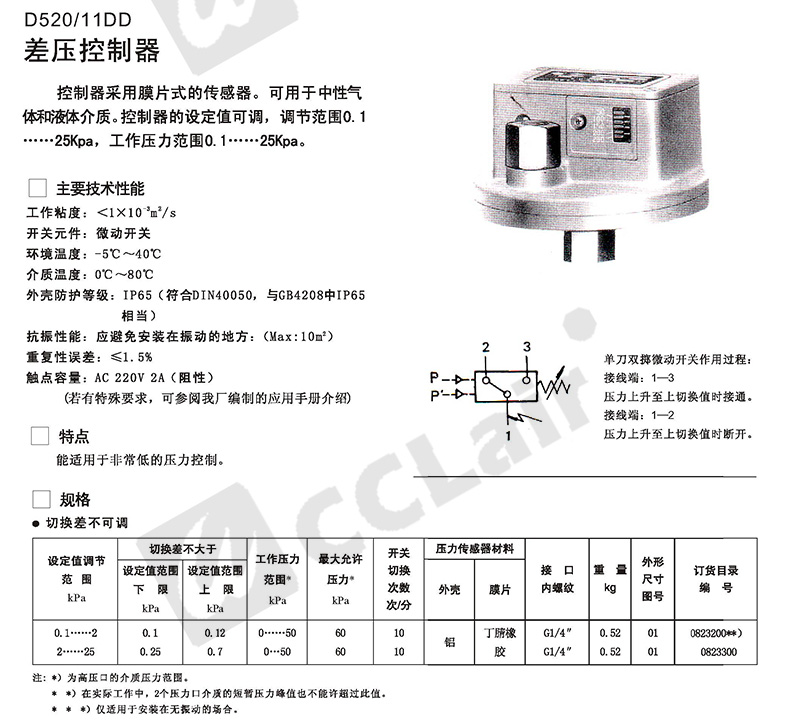 0819111,0819511,0819211,0819611,壓差開關(guān) 普通 D530/7DD切換差不可調(diào) 0819311,0819711,0819411,0819815,