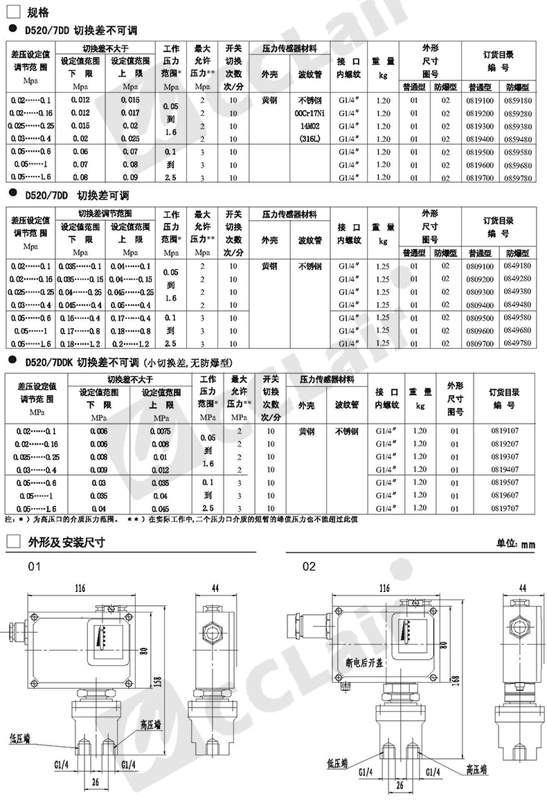 0859181,0859581,0859281,0859681,壓差控制器 防爆 D530/7DD切換差不可調(diào)