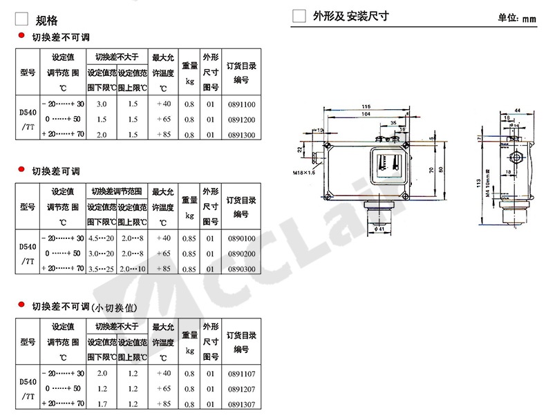 0891500,0891700,0891800,0891900,溫度控制器 普通D541/7T切換差不可調(diào)