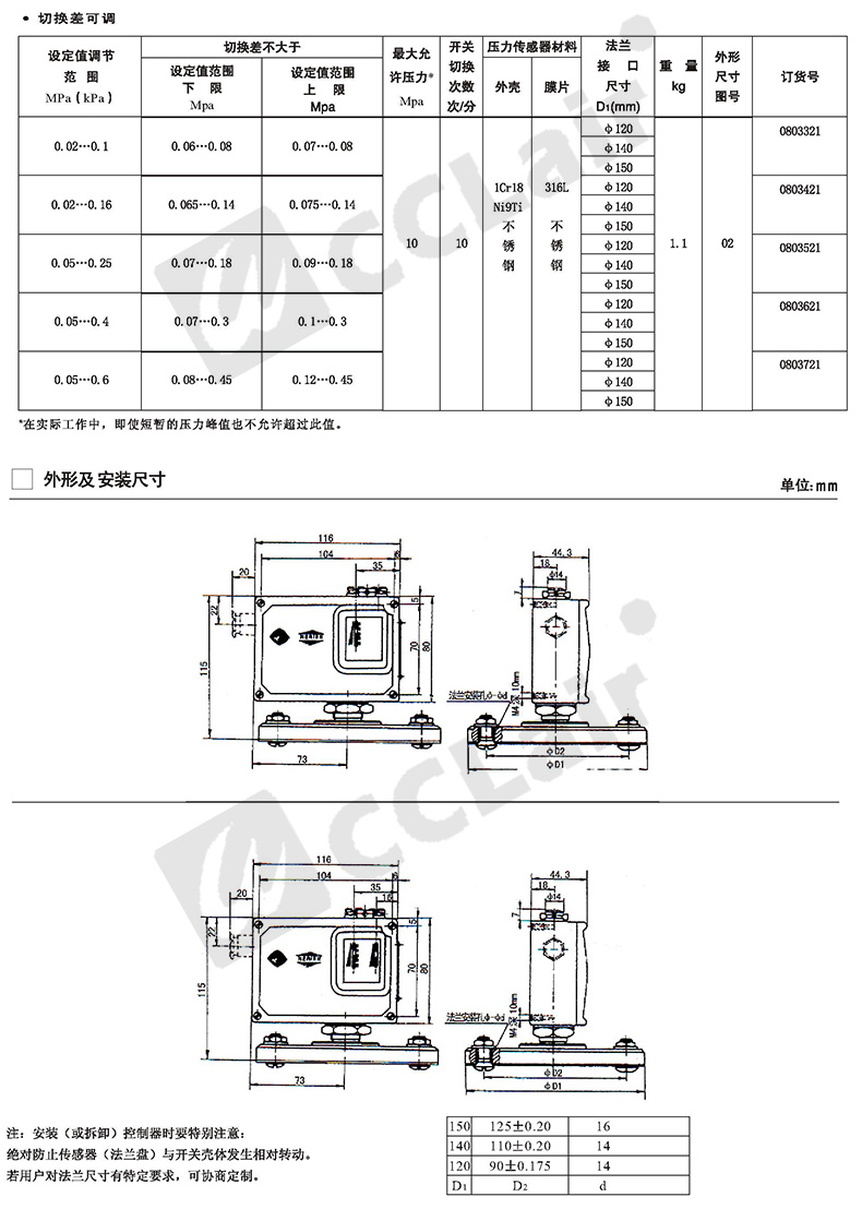 0883100,0883300,0883200,0883400,壓力開關(guān)D505/18D系列 法蘭