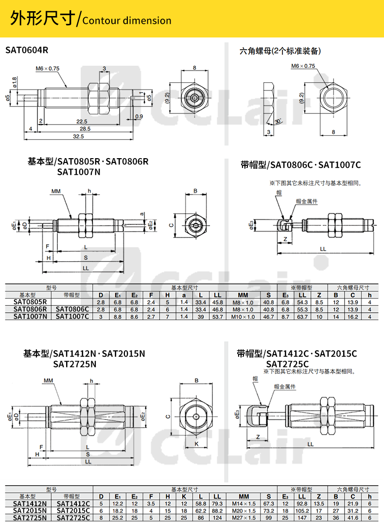 SAT-0806C,SAT-1007C,SAT-1210C,SAT-1412C,SAT-2015C,SAT-2525C,SAT-2725C,液壓緩沖器,CHELIC氣立可型,STA帶緩沖頭