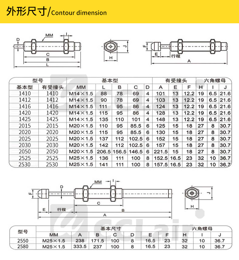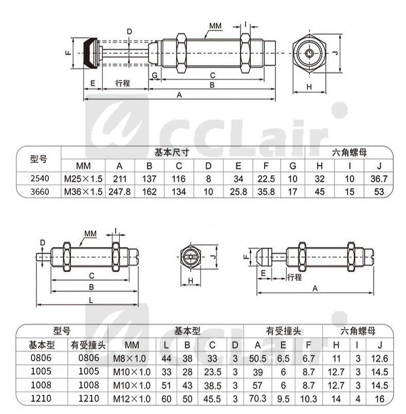 C-MAKS0806,C-MAKS1005,C-MAKS1008,C-MAKS1210,C-MAKS1412,C-MAKS2020,油壓緩沖器C-MAKC無緩沖頭