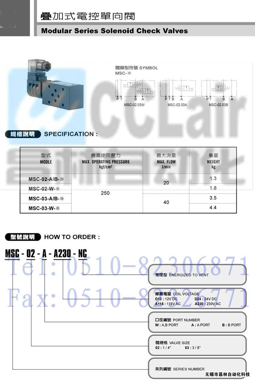 | MSC-03-A-A230-NC, | 疊加式電控單向閥 | |