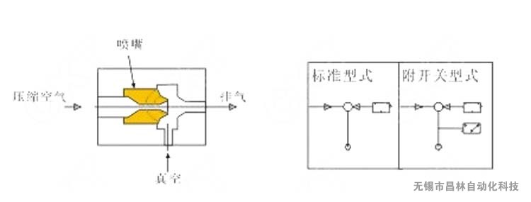 當(dāng)壓縮空氣經(jīng)過噴嘴,產(chǎn)生高速排放,經(jīng)擴(kuò)散產(chǎn)生側(cè)面吸引之作用。