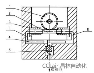 | 手動潤滑泵是人工扳動手柄,通過齒輪1帶動齒輪活塞2往復(fù)運動實現(xiàn)給脂的。當活塞處于圖示右端極限位置時,左端油腔容積增大形成真空,于是貯油筒內(nèi)的潤滑劑在彈簧和活塞片的作用下從吸油口吸入活塞左端油腔內(nèi)。當活塞向左移動時,被吸入的潤滑劑壓入孔道Ⅰ并把滑閥4推向右端極限位置,頂開單向閥5從出油口排出,此時,活塞右端油腔容積逐漸增大,潤滑劑被吸入,在活塞返回向右移動時,充滿潤滑劑的油腔又逐漸變小,擠壓潤滑劑進入孔道Ⅱ,推動滑閥4向左移動,頂開單向閥5從出油口排出,泵底部配裝換向閥,扳動換向手柄至左右二極限位置可實現(xiàn)雙線供劑。 | ![]() |