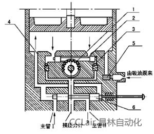 | 手動(dòng)潤(rùn)滑泵供脂是靠人工扳動(dòng)手柄,通過小齒輪1帶動(dòng)具有齒條的壓油柱塞2作往復(fù)運(yùn)動(dòng)來(lái)實(shí)現(xiàn)的。當(dāng)柱塞處于(右圖所示)右端極限位置時(shí),左端油腔容積增大形成真空,于是貯油筒內(nèi)的潤(rùn)滑脂在大氣和活塞壓力的作用下進(jìn)入左端油腔內(nèi)。當(dāng)柱塞向左移動(dòng)時(shí),擠壓潤(rùn)滑脂頂開單向閥4經(jīng)換向閥進(jìn)入輸油主管Ⅱ內(nèi);此時(shí),柱塞右端油腔容積逐漸增大,潤(rùn)滑脂被吸入,在柱塞返回向右移動(dòng)時(shí),充滿潤(rùn)滑脂的油腔又逐漸變小,這樣擠壓潤(rùn)滑脂,頂開單向閥3經(jīng)換向閥流進(jìn)輸送主管Ⅱ。供油過程中的換向是通過換向閥6實(shí)現(xiàn)的。當(dāng)把換向閥手柄拉出時(shí),潤(rùn)滑脂從主管Ⅱ排出;當(dāng)把換向閥手柄推進(jìn)時(shí),則潤(rùn)滑脂從主油管Ⅰ排出。 |