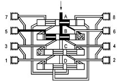 | 六、使用說明 1、在系統(tǒng)中推薦最多通過“兩級”來進行潤滑劑的分配。 2、排出油口1和2始終不能關閉。 3、始終使用原配的排出油口油嘴零件組。 4、裝拆調換油嘴零件時要從每側的上部或最下部吐出口開始。 5、如果吐出口要補充關閉,合并潤滑劑量(改流到下面低數(shù)的吐出口排出),必須去掉油嘴體,用M10×1螺塞封堵按下圖范例連接。 |