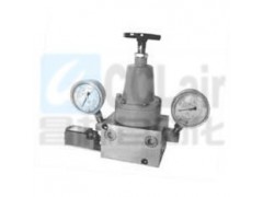 本閥為二位四通自動(dòng)液壓換向閥,上平面設(shè)有兩塊壓力表和調(diào)壓手輪。換向壓力由手輪調(diào)節(jié),順時(shí)針壓力升高,反之壓力降低。本閥門(mén)進(jìn)油口P與泵出油口連接,回油口R接貯油桶,供油口Ⅰ、Ⅱ分別與兩條供油管路連接。工作時(shí)當(dāng)Ⅰ路油壓達(dá)設(shè)定壓力,換向閥自動(dòng)切換到Ⅱ路,這樣潤(rùn)滑泵就能循環(huán)往復(fù)地向兩條管路供送潤(rùn)滑脂。