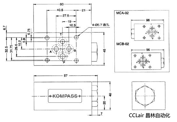 | 疊加式單向閥 | P: P油路 A: A油路 B: B油路 T: T油路 W: AB油路 |