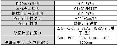 透光式玻璃板液位計(jì)主要技術(shù)參數(shù)