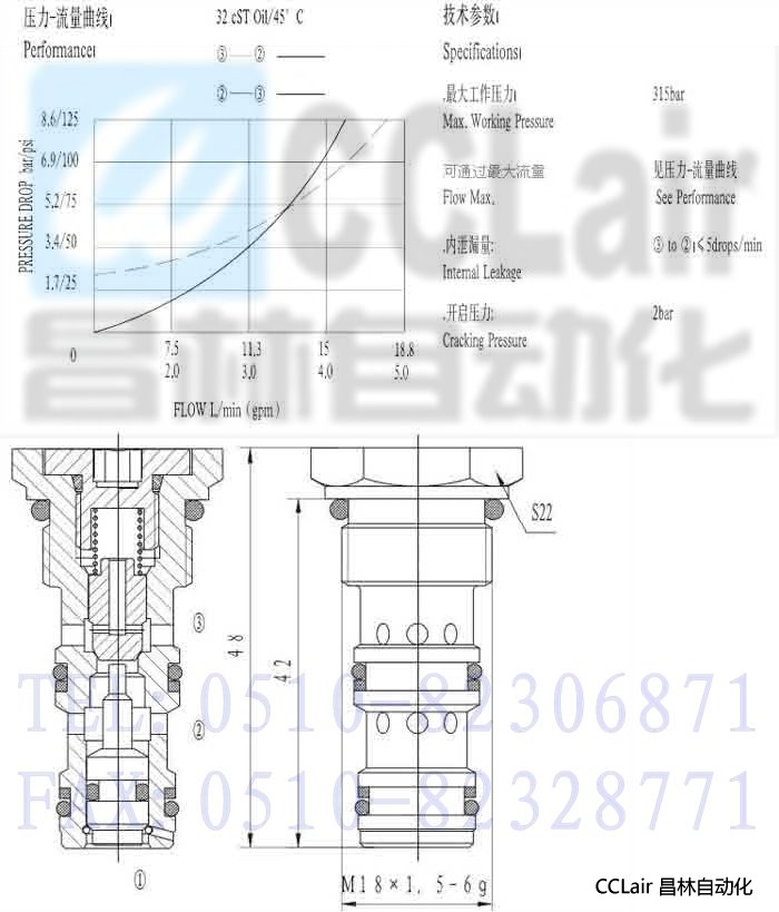 允許液流以很低壓力降從②口到③口,同時阻止液流從③口到②口。當(dāng)①口壓力足夠大克服彈簧力和液壓力后,允許液流從③口到②流動。