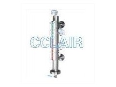 液位計根據(jù)浮力原理和磁性耦合作用研制而成。當(dāng)被測容器 中的液位升降時,液位計本體管中的磁性浮子也隨之升降,浮子 內(nèi)的永久磁鋼通過磁耦合傳遞到磁翻柱指示器,驅(qū)動紅、白翻柱 翻轉(zhuǎn)180°,當(dāng)液位上升時翻柱由白色轉(zhuǎn)變?yōu)榧t色,當(dāng)液位下降時 翻柱由紅色轉(zhuǎn)變?yōu)榘咨?,指示器的紅白交界處為容器內(nèi)部液位的實 際高度,從而實現(xiàn)液位清晰的指示。