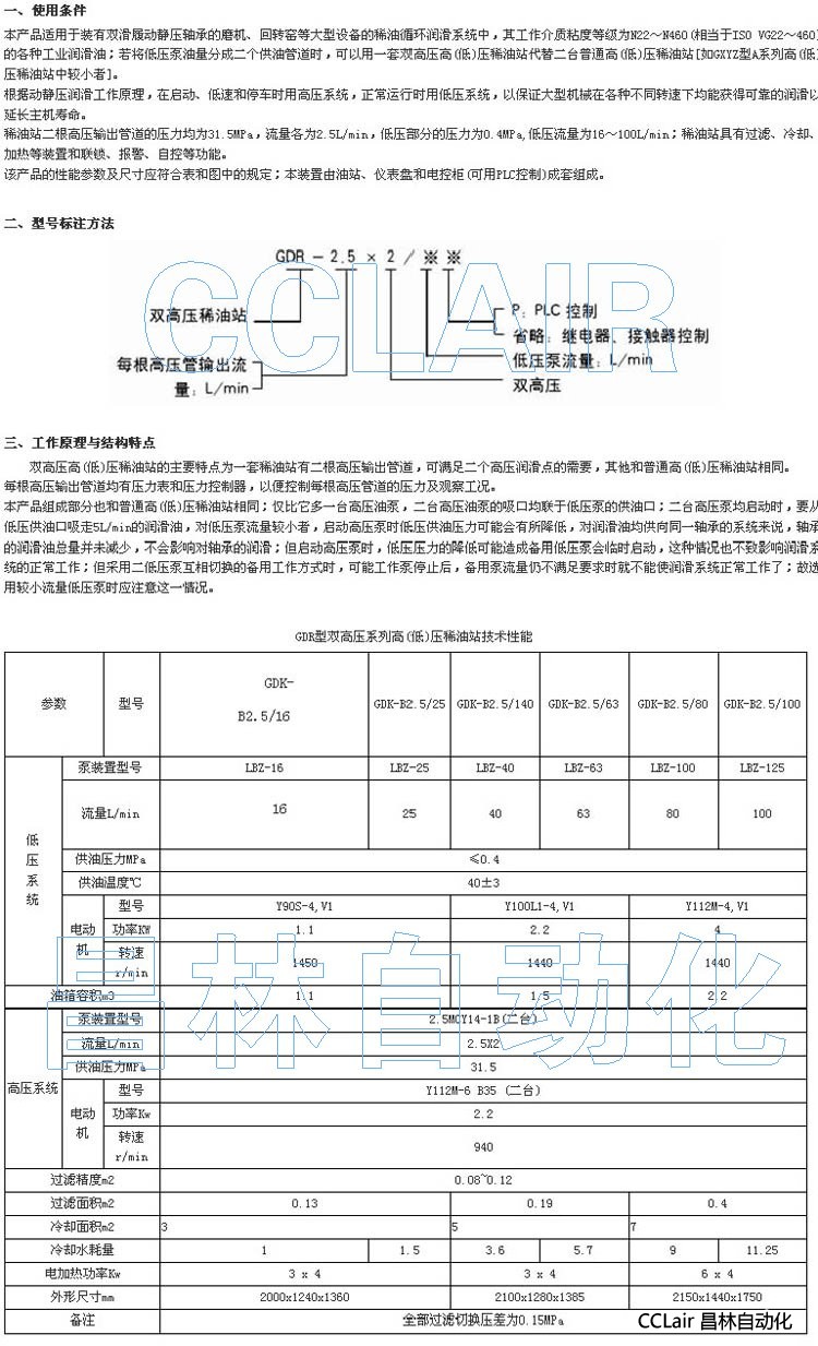GDK-B2.5/16,GDK-B2.5/25, GDK-B2.5/140, 雙高壓高(低)壓稀油站