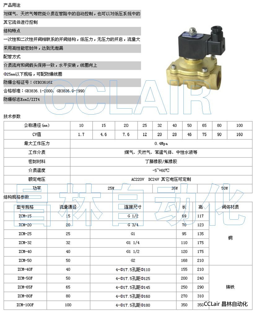 ZCM-15,ZCM-20,ZCM-25,ZCM-32,ZCM-40,零壓差煤氣電磁閥