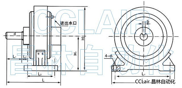 | 額定轉矩N.M | 激磁電流A | 允許滑差功率kW | 冷卻方式 | 磁粉量g | d(h6) | H1 | H | L | L1 | L2 | L3 | L4 | L5 | d1 | b | |