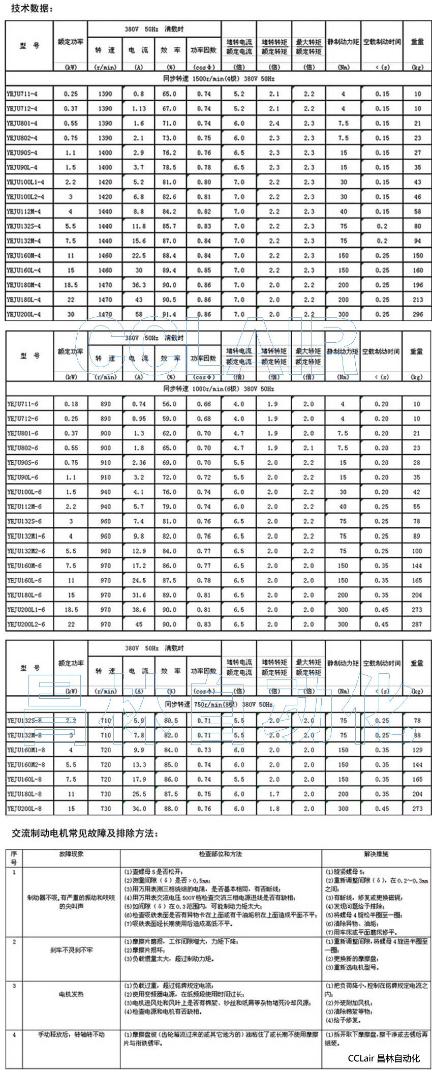 2、額定電壓380V 50Hz(交流制動(dòng)器與電動(dòng)機(jī)相同);