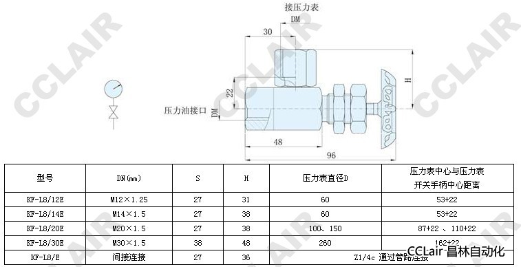 ④壓力表接頭螺紋:M12×1.25, M14×1.5, M20×1.5, M30×1.5