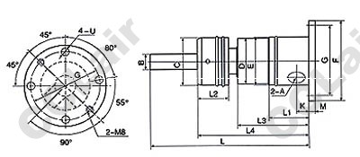 型號 A B C D E F G K L1 L2 L3 M U