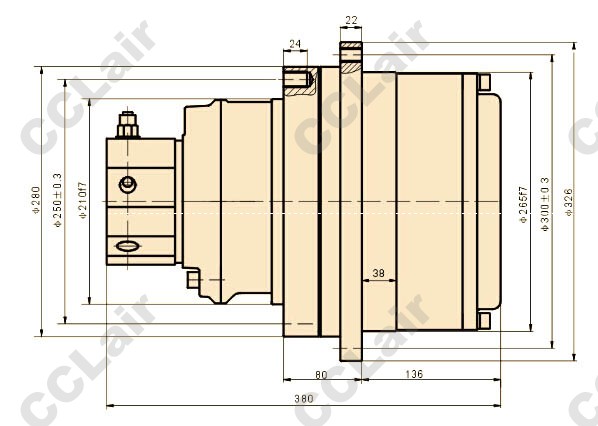 | 型 號(hào) | 扭矩N.m | 轉(zhuǎn)速范圍r/min | 傳動(dòng)比 | 壓力Mpa | 總排量 | 液壓馬達(dá) | 總重 | 適用機(jī)重ton | ||||