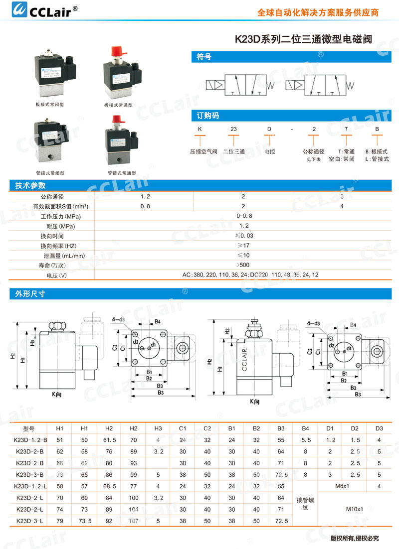 K23D-1.2-B,K23D-2-B,K23D-3-B,K23D-1.2-L,K23D-2-L,K23D-3-L,二位三通微型電磁閥