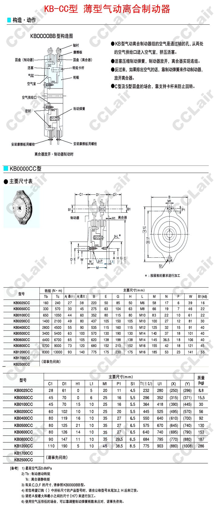 KB0025CC,KB0050CC,KB0100CC,KB0200CC,KB0400CC,KB0500CC,KB0600CC,KB0800CC,KB2500CC,薄型氣動離合制動器