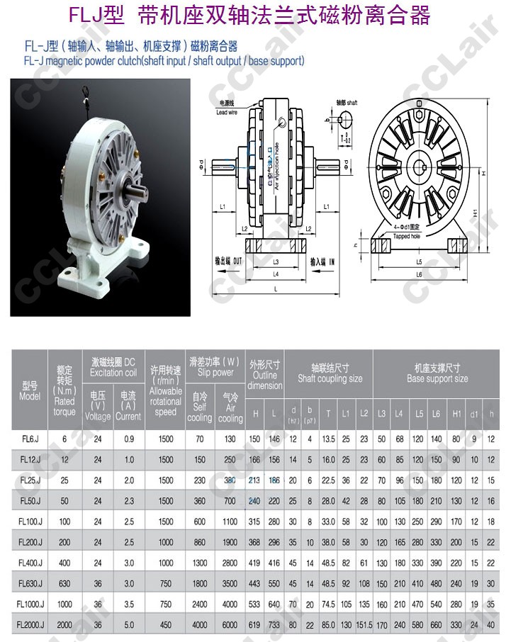 FL6.J,FL12.J,FL25.J,FLJ-2.5,FL50.J,FL100.J,FL200.J,FL400.J,FL630.J,FL1000.J,FL2000.J,機(jī)座式磁粉離合器
