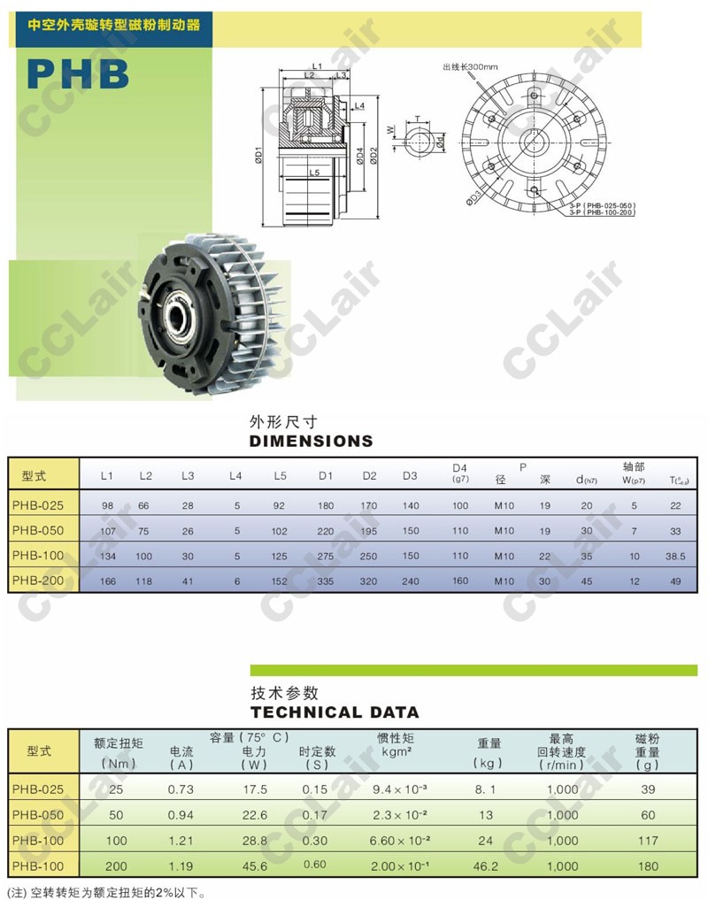 PHB-025,PHB-050,PHB-100,PHB-200,中空外殼璇轉(zhuǎn)型磁粉制動(dòng)器