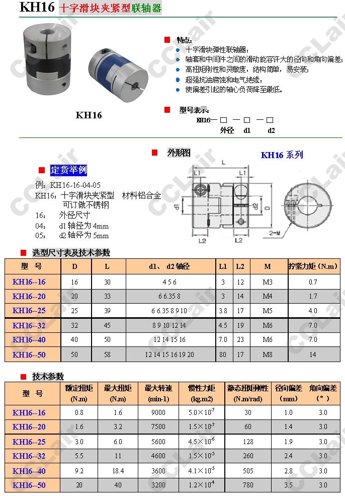 KH16-16,KH16-20,KH16-25,KH16-32,KH16-40,KH16-50,十字滑塊夾緊型聯(lián)軸器