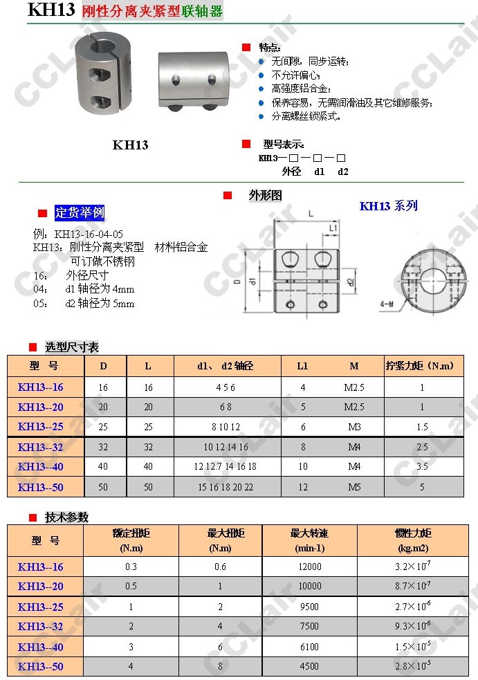 KH13-16,KH13-20,KH13-25,KH13-32,KH13-40,KH13-50,剛性標(biāo)準(zhǔn)夾緊型聯(lián)軸器