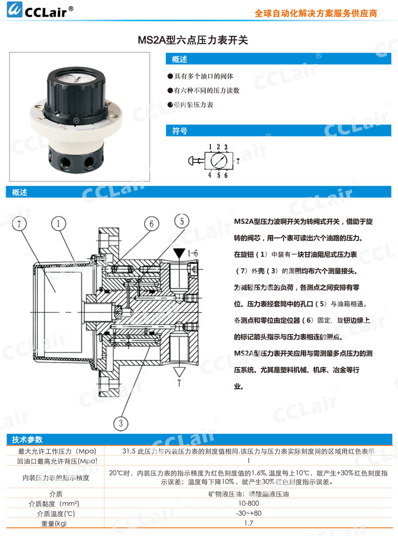 MS2A20/16,MS2A20/25,MS2A20/40,MS2A20/60,MS2A20/100,MS2A20/250,MS2A20/400,六點壓力表開關(guān)