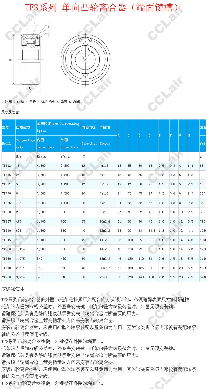 TFS12,TFS15,TFS17,TFS20,TFS25,TFS30,TFS35,TFS40,TFS45,TFS50,TFS60,TFS70,TFS80,單向凸輪離合器