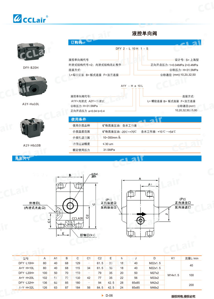 DFY2-F32H1-S,DFY2-F32H2-S,DFY2-F50H1-S,DFY2-F50H2-S,DFY2-F80H1-S,DFY2-F80H2-S,DFY2-L20H1-S,液控單向閥