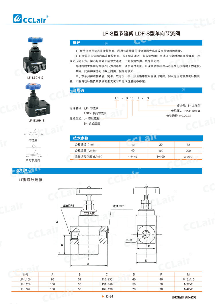 LF-L10H-S,LF-L20H-S,LF-L32H-S,LF-B10H-S,LF-B20H-S,LF-B32H-S,節(jié)流閥