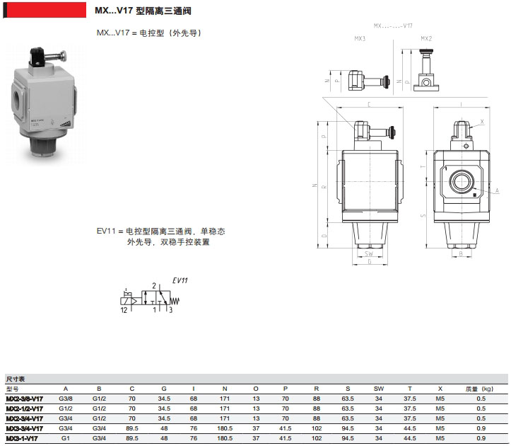 MX2-3/8-V01,MX2-1/2-V16,MX3-3/8-V17,MX3-1/2-V36,MX2-1-V36,camozzi隔離三通閥