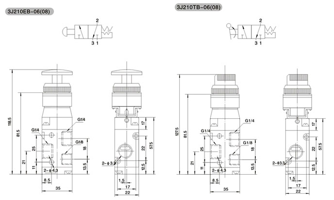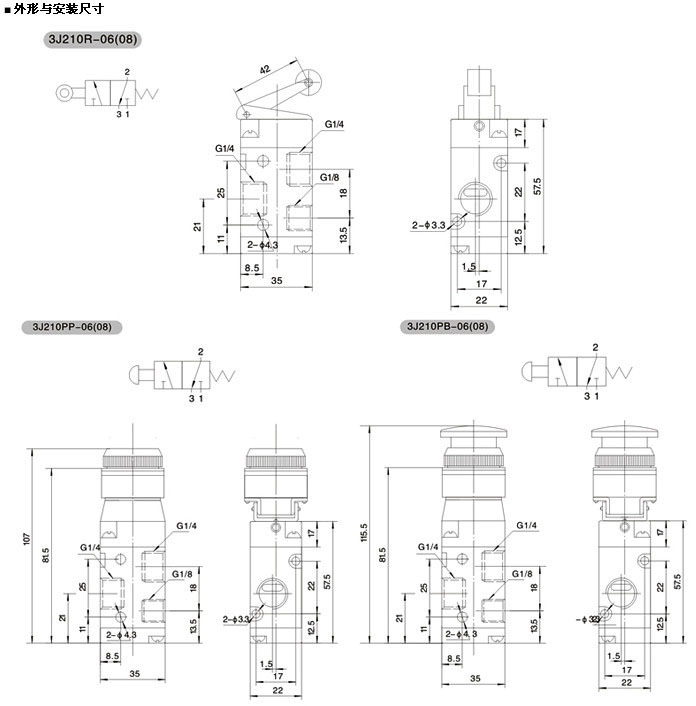 | 舉例 ▲ 欲訂購接管螺紋為1/4",旋鈕式二位三通的3J2系列控制閥,其正確的訂購碼為:3J210-TB-08 ■ 技術(shù)參數(shù) |